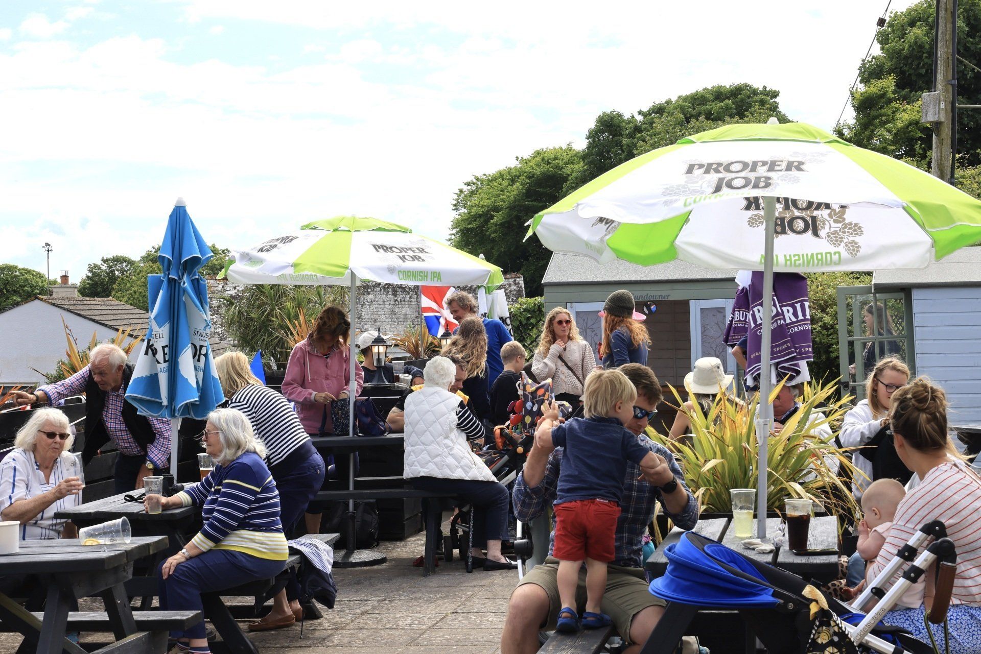 The Old Gaffers started off the afternoon with the first round of sea-shanty songs whilst everyone gathered themselves together for food, drink and cake; some bringing their own picnics and many treating themselves to one of the freshly made stone-baked pizzas or hot dogs served by the Church House Inn. Pimms, Beer and Cider along with fruit juice was the offering of the day with the pub also serving a full drinks menu alongside for those who wanted it.