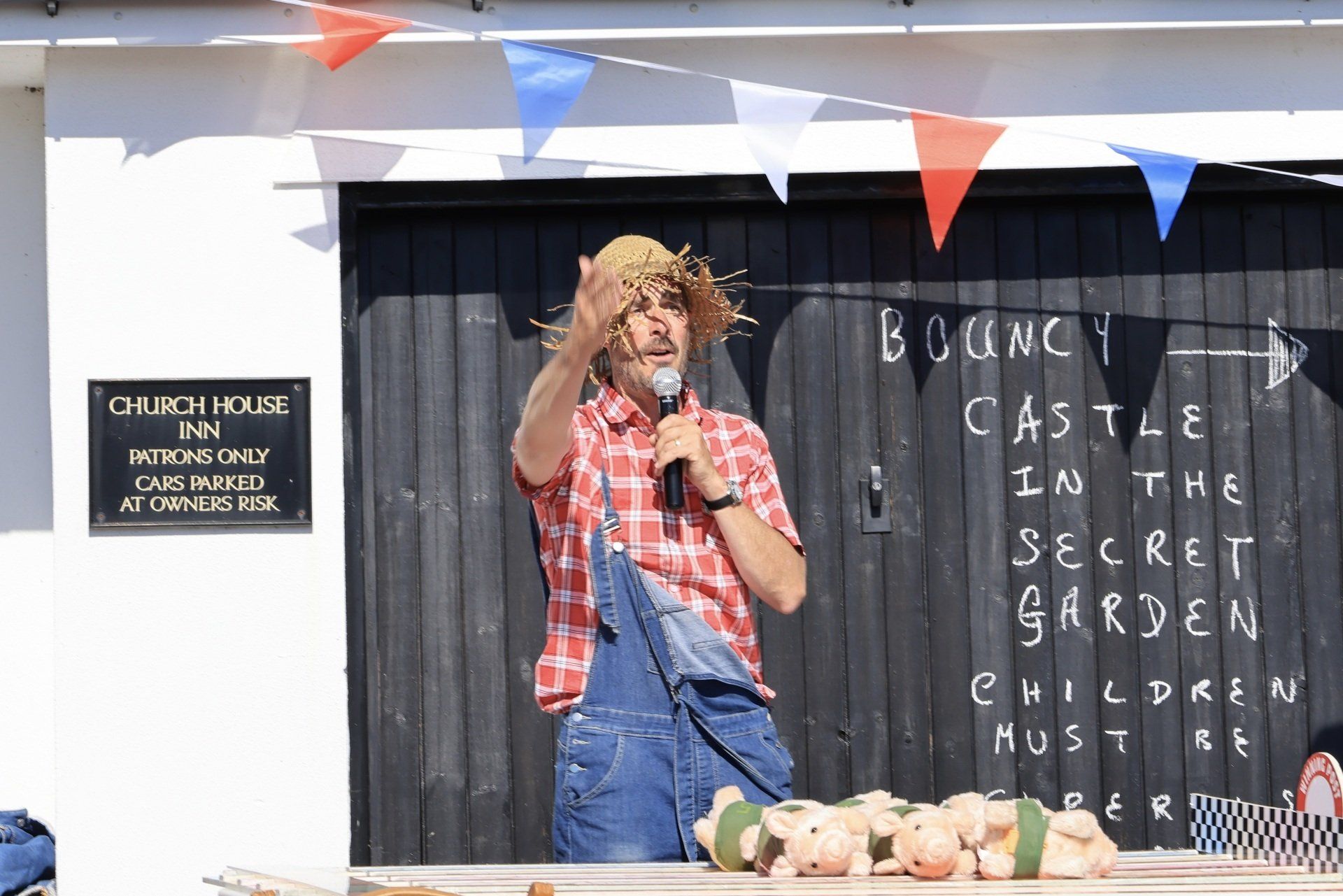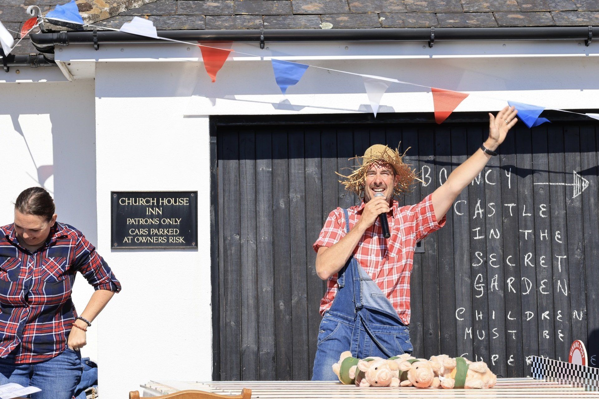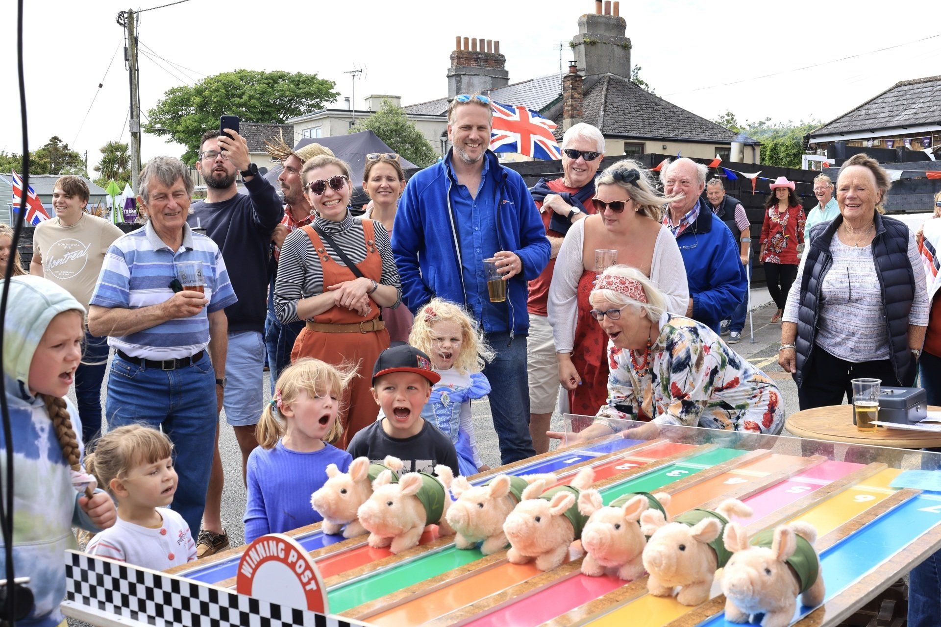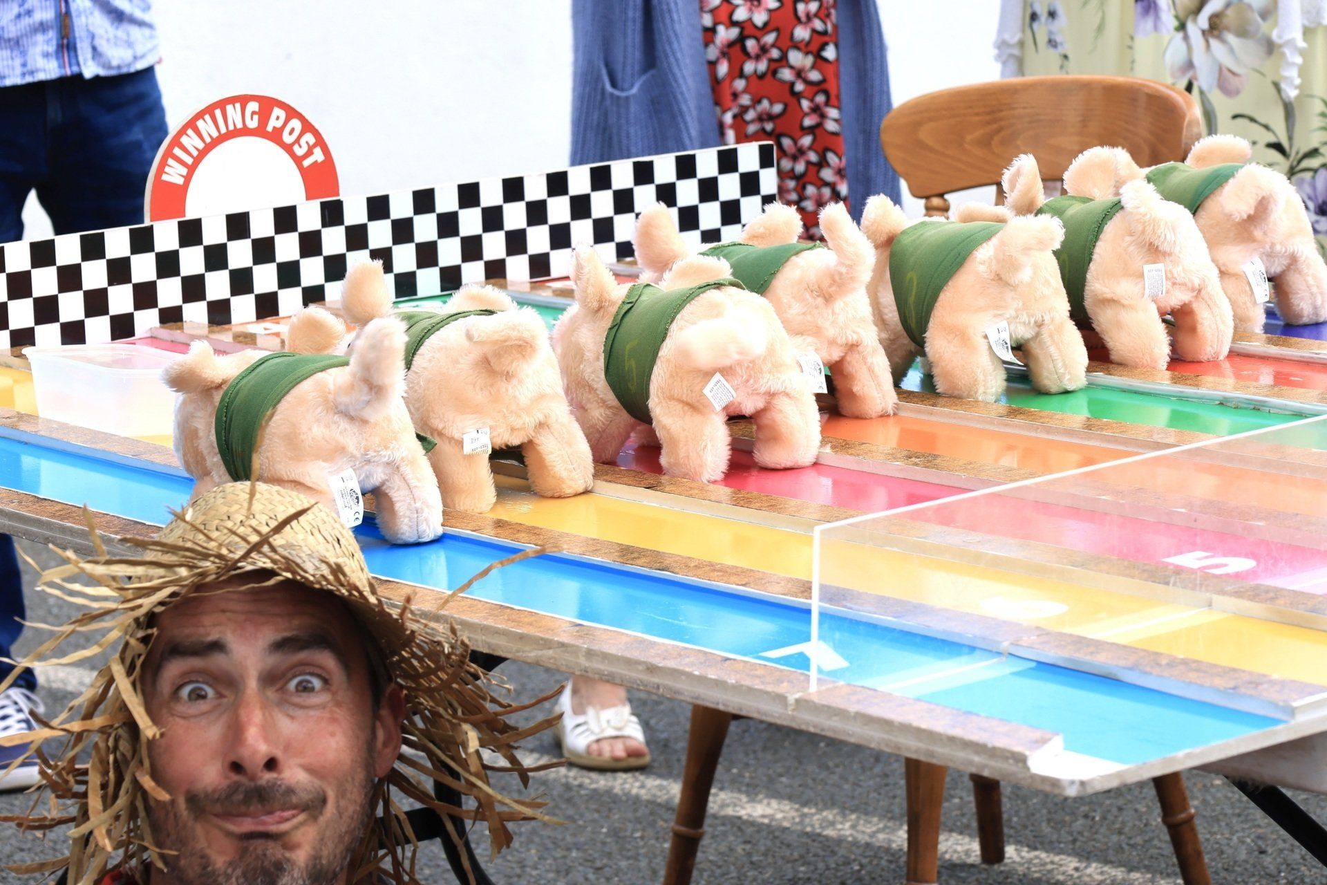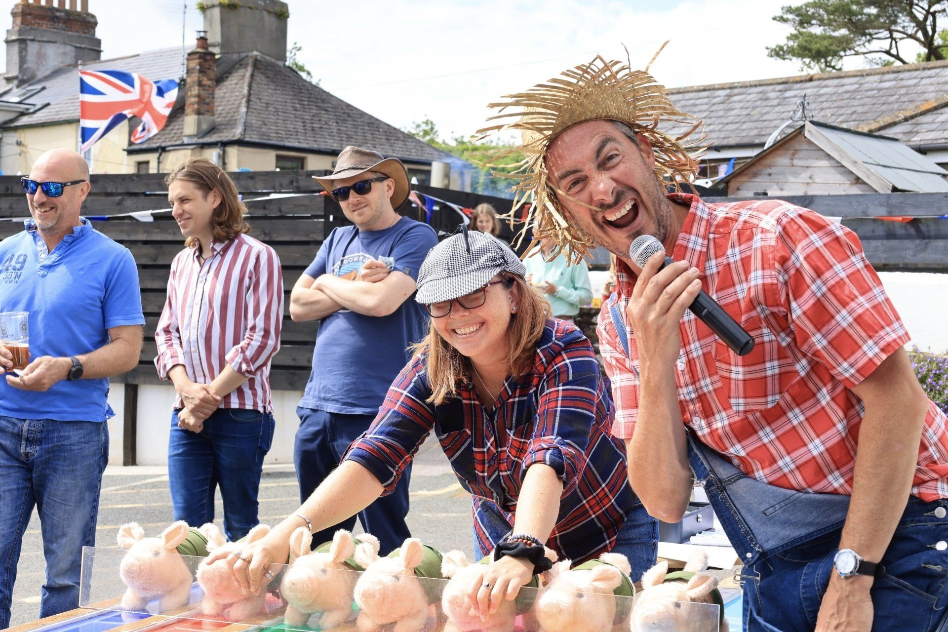With the drinks flowing and bellies full, the celebrations went up a gear with the arrival of Adrian Byng and his pig racing. What a treat!!