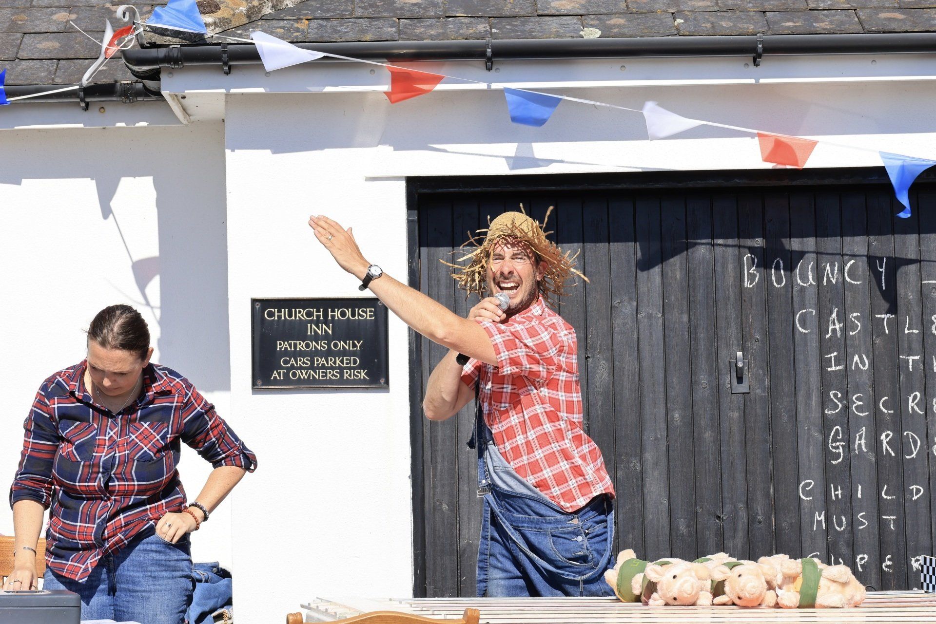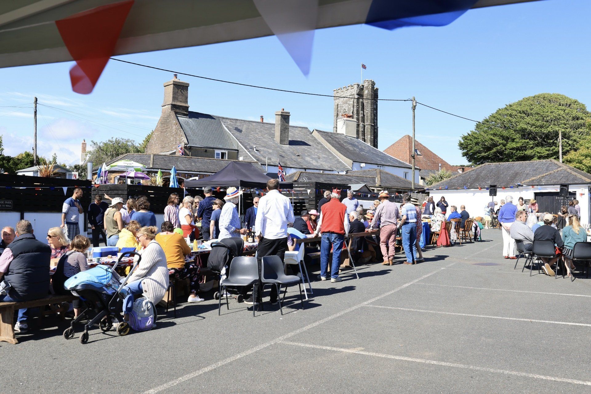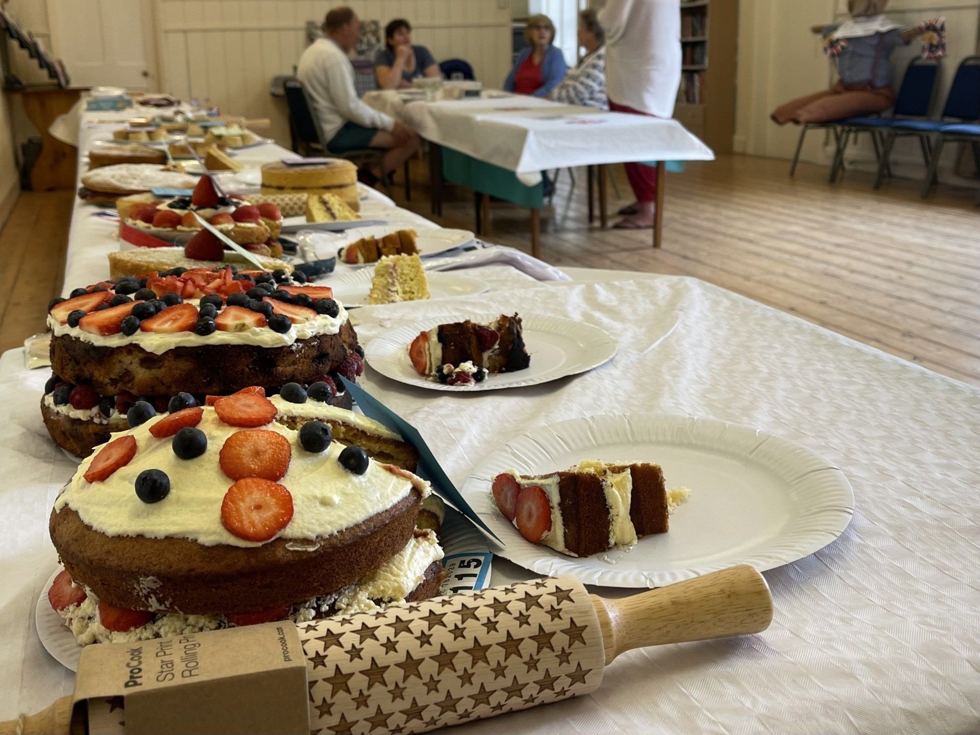 Tables lined the Church House Inn car park and along Pump Lane leading down to the Church Hall which housed the many splendid cakes that were entered into the cake baking competition.